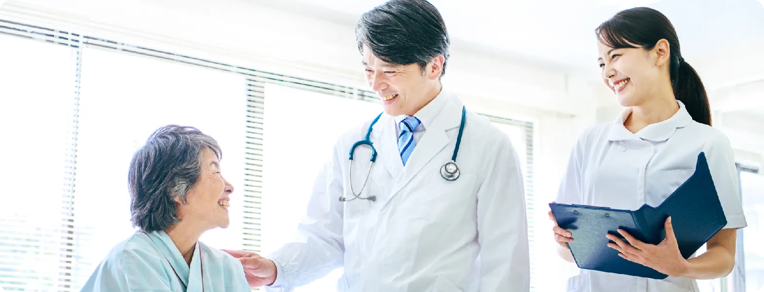 退院先(施設在宅病院など)のご相談についてお手伝いさせていたたきます。1階「地域医療連携センター」にお立ち寄りください。