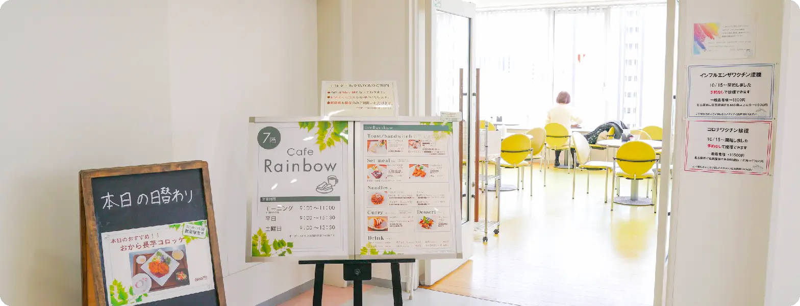 ※ 喫茶、併設の売店でアメニティ、生活用品を販売しております。